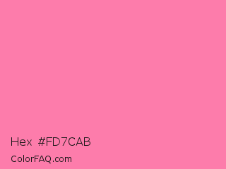 Hex #fd7cab Color is a light rose color and the nearest color is Tickle Me Pink Crayola #fc80a5. Hex code #fd7cab and RGB value is rgb(253,124,171). In RGB color space, this color is composed of 99% red, 49% green, 67% blue, In CMYK color space, this color is composed of 0% cyan, 51% magenta, 32% yellow , 1% black , In HSL color space, this color has a hue angle of 338° , 97% saturation and 74% lightness.