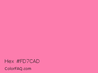 Hex #fd7cad Color is a light rose color and the nearest color is Tickle Me Pink Crayola #fc80a5. Hex code #fd7cad and RGB value is rgb(253,124,173). In RGB color space, this color is composed of 99% red, 49% green, 68% blue, In CMYK color space, this color is composed of 0% cyan, 51% magenta, 32% yellow , 1% black , In HSL color space, this color has a hue angle of 337° , 97% saturation and 74% lightness.