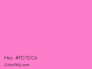 Hex #fd7dca Color is a light magenta color and the nearest color is Princess Perfume #ff85cf. Hex code #fd7dca and RGB value is rgb(253,125,202). In RGB color space, this color is composed of 99% red, 49% green, 79% blue, In CMYK color space, this color is composed of 0% cyan, 51% magenta, 20% yellow , 1% black , In HSL color space, this color has a hue angle of 324° , 97% saturation and 74% lightness.