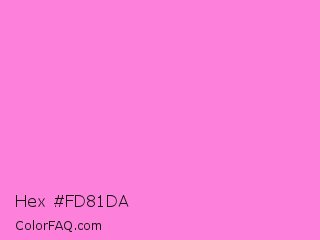 Hex #fd81da Color is a light magenta color and the nearest color is Princess Perfume #ff85cf. Hex code #fd81da and RGB value is rgb(253,129,218). In RGB color space, this color is composed of 99% red, 51% green, 85% blue, In CMYK color space, this color is composed of 0% cyan, 49% magenta, 14% yellow , 1% black , In HSL color space, this color has a hue angle of 317° , 97% saturation and 75% lightness.