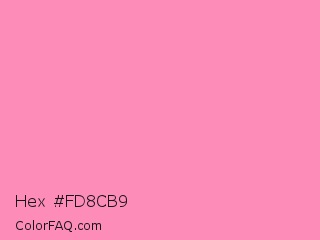 Hex #fd8cb9 Color is a light rose color and the nearest color is Schauss Pink #ff91af. Hex code #fd8cb9 and RGB value is rgb(253,140,185). In RGB color space, this color is composed of 99% red, 55% green, 73% blue, In CMYK color space, this color is composed of 0% cyan, 45% magenta, 27% yellow , 1% black , In HSL color space, this color has a hue angle of 336° , 97% saturation and 77% lightness.
