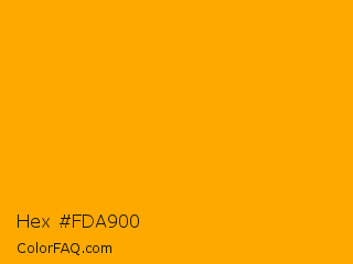 Hex #fda900 Color is a normal orange color and the nearest color is Chrome Yellow #ffa700. Hex code #fda900 and RGB value is rgb(253,169,0). In RGB color space, this color is composed of 99% red, 66% green, 0% blue, In CMYK color space, this color is composed of 0% cyan, 33% magenta, 100% yellow , 1% black , In HSL color space, this color has a hue angle of 40° , 100% saturation and 50% lightness.