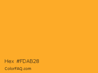 Hex #fdab28 Color is a normal orange color and the nearest color is Sea Buckthorn #fba129. Hex code #fdab28 and RGB value is rgb(253,171,40). In RGB color space, this color is composed of 99% red, 67% green, 16% blue, In CMYK color space, this color is composed of 0% cyan, 32% magenta, 84% yellow , 1% black , In HSL color space, this color has a hue angle of 37° , 98% saturation and 57% lightness.