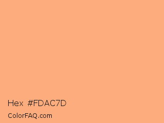 Hex #fdac7d Color is a light orange color and the nearest color is Hit Pink #ffab81. Hex code #fdac7d and RGB value is rgb(253,172,125). In RGB color space, this color is composed of 99% red, 67% green, 49% blue, In CMYK color space, this color is composed of 0% cyan, 32% magenta, 51% yellow , 1% black , In HSL color space, this color has a hue angle of 22° , 97% saturation and 74% lightness.