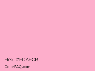 Hex #fdaecb Color is a very light rose color and the nearest color is Lavender Pink #fbaed2. Hex code #fdaecb and RGB value is rgb(253,174,203). In RGB color space, this color is composed of 99% red, 68% green, 80% blue, In CMYK color space, this color is composed of 0% cyan, 31% magenta, 20% yellow , 1% black , In HSL color space, this color has a hue angle of 338° , 95% saturation and 84% lightness.