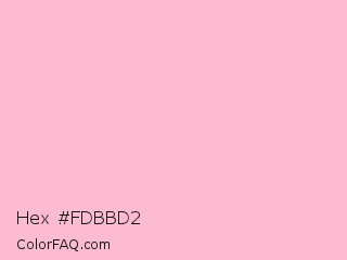 Hex #fdbbd2 Color is a very light rose color and the nearest color is Cotton Candy #ffb7d5. Hex code #fdbbd2 and RGB value is rgb(253,187,210). In RGB color space, this color is composed of 99% red, 73% green, 82% blue, In CMYK color space, this color is composed of 0% cyan, 26% magenta, 17% yellow , 1% black , In HSL color space, this color has a hue angle of 339° , 94% saturation and 86% lightness.