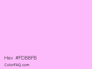 Hex #fdbbfb Color is a very light magenta color and the nearest color is Electric Lavender #f4bbff. Hex code #fdbbfb and RGB value is rgb(253,187,251). In RGB color space, this color is composed of 99% red, 73% green, 98% blue, In CMYK color space, this color is composed of 0% cyan, 26% magenta, 1% yellow , 1% black , In HSL color space, this color has a hue angle of 302° , 94% saturation and 86% lightness.