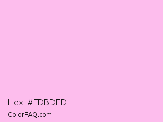 Hex #fdbded Color is a very light magenta color and the nearest color is Chantilly #f8c3df. Hex code #fdbded and RGB value is rgb(253,189,237). In RGB color space, this color is composed of 99% red, 74% green, 93% blue, In CMYK color space, this color is composed of 0% cyan, 25% magenta, 6% yellow , 1% black , In HSL color space, this color has a hue angle of 315° , 94% saturation and 87% lightness.