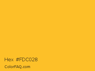 Hex #fdc028 Color is a normal orange color and the nearest color is Lightning Yellow #fcc01e. Hex code #fdc028 and RGB value is rgb(253,192,40). In RGB color space, this color is composed of 99% red, 75% green, 16% blue, In CMYK color space, this color is composed of 0% cyan, 24% magenta, 84% yellow , 1% black , In HSL color space, this color has a hue angle of 43° , 98% saturation and 57% lightness.