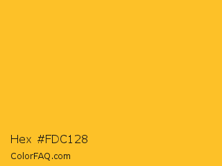 Hex #fdc128 Color is a normal orange color and the nearest color is Lightning Yellow #fcc01e. Hex code #fdc128 and RGB value is rgb(253,193,40). In RGB color space, this color is composed of 99% red, 76% green, 16% blue, In CMYK color space, this color is composed of 0% cyan, 24% magenta, 84% yellow , 1% black , In HSL color space, this color has a hue angle of 43° , 98% saturation and 57% lightness.