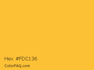 Hex #fdc136 Color is a normal orange color and the nearest color is Saffron #f4c430. Hex code #fdc136 and RGB value is rgb(253,193,54). In RGB color space, this color is composed of 99% red, 76% green, 21% blue, In CMYK color space, this color is composed of 0% cyan, 24% magenta, 79% yellow , 1% black , In HSL color space, this color has a hue angle of 42° , 98% saturation and 60% lightness.