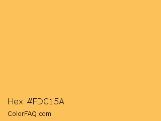 Hex #fdc15a Color is a light orange color and the nearest color is Saffron Mango #f9bf58. Hex code #fdc15a and RGB value is rgb(253,193,90). In RGB color space, this color is composed of 99% red, 76% green, 35% blue, In CMYK color space, this color is composed of 0% cyan, 24% magenta, 64% yellow , 1% black , In HSL color space, this color has a hue angle of 38° , 98% saturation and 67% lightness.