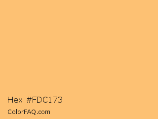 Hex #fdc173 Color is a light orange color and the nearest color is Mellow Apricot #f8b878. Hex code #fdc173 and RGB value is rgb(253,193,115). In RGB color space, this color is composed of 99% red, 76% green, 45% blue, In CMYK color space, this color is composed of 0% cyan, 24% magenta, 55% yellow , 1% black , In HSL color space, this color has a hue angle of 34° , 97% saturation and 72% lightness.