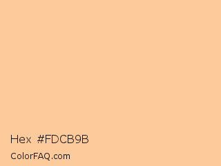 Hex #fdcb9b Color is a light orange color and the nearest color is Peach Orange #ffcc99. Hex code #fdcb9b and RGB value is rgb(253,203,155). In RGB color space, this color is composed of 99% red, 80% green, 61% blue, In CMYK color space, this color is composed of 0% cyan, 20% magenta, 39% yellow , 1% black , In HSL color space, this color has a hue angle of 29° , 96% saturation and 80% lightness.
