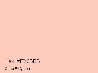 Hex #fdcbbb Color is a very light color and the nearest color is Romantic #ffd2b7. Hex code #fdcbbb and RGB value is rgb(253,203,187). In RGB color space, this color is composed of 99% red, 80% green, 73% blue, In CMYK color space, this color is composed of 0% cyan, 20% magenta, 26% yellow , 1% black , In HSL color space, this color has a hue angle of 15° , 94% saturation and 86% lightness.