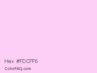 Hex #fdcff6 Color is a very light magenta color and the nearest color is Shampoo #ffcff1. Hex code #fdcff6 and RGB value is rgb(253,207,246). In RGB color space, this color is composed of 99% red, 81% green, 96% blue, In CMYK color space, this color is composed of 0% cyan, 18% magenta, 3% yellow , 1% black , In HSL color space, this color has a hue angle of 309° , 92% saturation and 90% lightness.