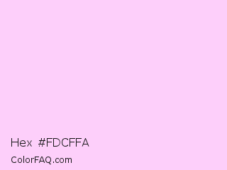 Hex #fdcffa Color is a very light magenta color and the nearest color is Shampoo #ffcff1. Hex code #fdcffa and RGB value is rgb(253,207,250). In RGB color space, this color is composed of 99% red, 81% green, 98% blue, In CMYK color space, this color is composed of 0% cyan, 18% magenta, 1% yellow , 1% black , In HSL color space, this color has a hue angle of 304° , 92% saturation and 90% lightness.