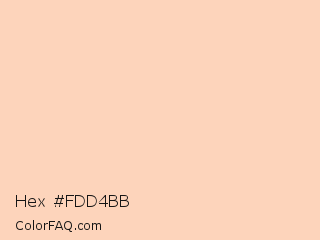 Hex #fdd4bb Color is a very light orange color and the nearest color is Romantic #ffd2b7. Hex code #fdd4bb and RGB value is rgb(253,212,187). In RGB color space, this color is composed of 99% red, 83% green, 73% blue, In CMYK color space, this color is composed of 0% cyan, 16% magenta, 26% yellow , 1% black , In HSL color space, this color has a hue angle of 23° , 94% saturation and 86% lightness.