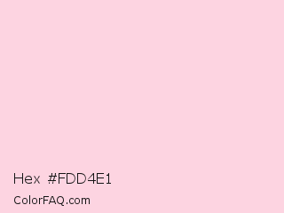 Hex #fdd4e1 Color is a very light rose color and the nearest color is Pig Pink #fdd7e4. Hex code #fdd4e1 and RGB value is rgb(253,212,225). In RGB color space, this color is composed of 99% red, 83% green, 88% blue, In CMYK color space, this color is composed of 0% cyan, 16% magenta, 11% yellow , 1% black , In HSL color space, this color has a hue angle of 341° , 91% saturation and 91% lightness.