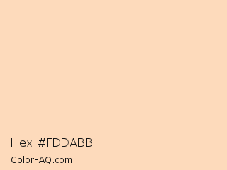 Hex #fddabb Color is a very light orange color and the nearest color is Peach Puff #ffdab9. Hex code #fddabb and RGB value is rgb(253,218,187). In RGB color space, this color is composed of 99% red, 85% green, 73% blue, In CMYK color space, this color is composed of 0% cyan, 14% magenta, 26% yellow , 1% black , In HSL color space, this color has a hue angle of 28° , 94% saturation and 86% lightness.
