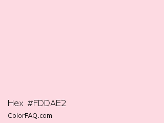 Hex #fddae2 Color is a very light red color and the nearest color is Pig Pink #fdd7e4. Hex code #fddae2 and RGB value is rgb(253,218,226). In RGB color space, this color is composed of 99% red, 85% green, 89% blue, In CMYK color space, this color is composed of 0% cyan, 14% magenta, 11% yellow , 1% black , In HSL color space, this color has a hue angle of 346° , 90% saturation and 92% lightness.