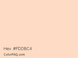 Hex #fddbc4 Color is a very light orange color and the nearest color is Unbleached Silk #ffddca. Hex code #fddbc4 and RGB value is rgb(253,219,196). In RGB color space, this color is composed of 99% red, 86% green, 77% blue, In CMYK color space, this color is composed of 0% cyan, 13% magenta, 23% yellow , 1% black , In HSL color space, this color has a hue angle of 24° , 93% saturation and 88% lightness.