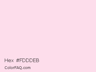 Hex #fdddeb Color is a very light rose color and the nearest color is Mimi Pink #ffdae9. Hex code #fdddeb and RGB value is rgb(253,221,235). In RGB color space, this color is composed of 99% red, 87% green, 92% blue, In CMYK color space, this color is composed of 0% cyan, 13% magenta, 7% yellow , 1% black , In HSL color space, this color has a hue angle of 334° , 89% saturation and 93% lightness.
