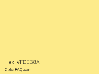 Hex #fdeb8a Color is a light yellow color and the nearest color is Sweet Corn #fbea8c. Hex code #fdeb8a and RGB value is rgb(253,235,138). In RGB color space, this color is composed of 99% red, 92% green, 54% blue, In CMYK color space, this color is composed of 0% cyan, 7% magenta, 45% yellow , 1% black , In HSL color space, this color has a hue angle of 51° , 97% saturation and 77% lightness.