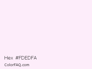 Hex #fdedfa Color is a almost white magenta color and the nearest color is Tutu #fff1f9. Hex code #fdedfa and RGB value is rgb(253,237,250). In RGB color space, this color is composed of 99% red, 93% green, 98% blue, In CMYK color space, this color is composed of 0% cyan, 6% magenta, 1% yellow , 1% black , In HSL color space, this color has a hue angle of 311° , 80% saturation and 96% lightness.