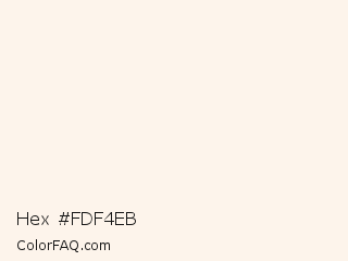 Hex #fdf4eb Color is a almost white orange color and the nearest color is Serenade #fff4e8. Hex code #fdf4eb and RGB value is rgb(253,244,235). In RGB color space, this color is composed of 99% red, 96% green, 92% blue, In CMYK color space, this color is composed of 0% cyan, 4% magenta, 7% yellow , 1% black , In HSL color space, this color has a hue angle of 30° , 82% saturation and 96% lightness.