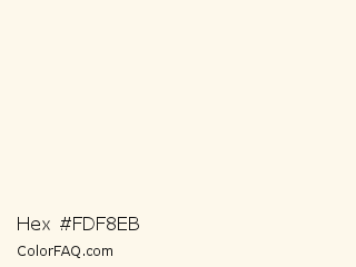 Hex #fdf8eb Color is a almost white orange color and the nearest color is Cosmic Latte #fff8e7. Hex code #fdf8eb and RGB value is rgb(253,248,235). In RGB color space, this color is composed of 99% red, 97% green, 92% blue, In CMYK color space, this color is composed of 0% cyan, 2% magenta, 7% yellow , 1% black , In HSL color space, this color has a hue angle of 43° , 82% saturation and 96% lightness.