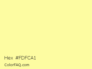 Hex #fdfca1 Color is a very light yellow color and the nearest color is Milan #faffa4. Hex code #fdfca1 and RGB value is rgb(253,252,161). In RGB color space, this color is composed of 99% red, 99% green, 63% blue, In CMYK color space, this color is composed of 0% cyan, 0% magenta, 36% yellow , 1% black , In HSL color space, this color has a hue angle of 59° , 96% saturation and 81% lightness.