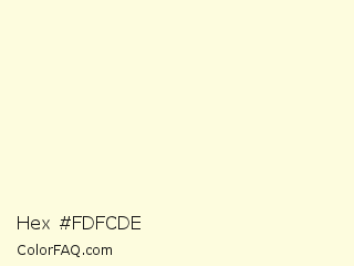 Hex #fdfcde Color is a very light yellow color and the nearest color is Scotch Mist #fffbdc. Hex code #fdfcde and RGB value is rgb(253,252,222). In RGB color space, this color is composed of 99% red, 99% green, 87% blue, In CMYK color space, this color is composed of 0% cyan, 0% magenta, 12% yellow , 1% black , In HSL color space, this color has a hue angle of 58° , 89% saturation and 93% lightness.