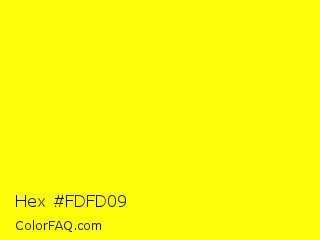Hex #fdfd09 Color is a normal yellow color and the nearest color is Lemon Glacier #fdff00. Hex code #fdfd09 and RGB value is rgb(253,253,9). In RGB color space, this color is composed of 99% red, 99% green, 4% blue, In CMYK color space, this color is composed of 0% cyan, 0% magenta, 96% yellow , 1% black , In HSL color space, this color has a hue angle of 60° , 98% saturation and 51% lightness.