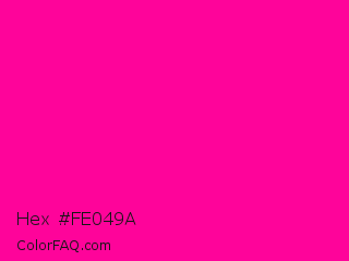 Hex #fe049a Color is a normal magenta color and the nearest color is Magenta Process #ff0090. Hex code #fe049a and RGB value is rgb(254,4,154). In RGB color space, this color is composed of 100% red, 2% green, 60% blue, In CMYK color space, this color is composed of 0% cyan, 98% magenta, 39% yellow , 0% black , In HSL color space, this color has a hue angle of 324° , 99% saturation and 51% lightness.