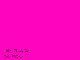 Hex #fe04bf Color is a normal magenta color and the nearest color is Shocking Pink #fc0fc0. Hex code #fe04bf and RGB value is rgb(254,4,191). In RGB color space, this color is composed of 100% red, 2% green, 75% blue, In CMYK color space, this color is composed of 0% cyan, 98% magenta, 25% yellow , 0% black , In HSL color space, this color has a hue angle of 315° , 99% saturation and 51% lightness.