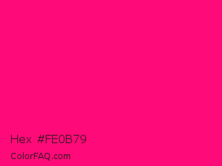 Hex #fe0b79 Color is a normal rose color and the nearest color is Winter Sky #ff007c. Hex code #fe0b79 and RGB value is rgb(254,11,121). In RGB color space, this color is composed of 100% red, 4% green, 47% blue, In CMYK color space, this color is composed of 0% cyan, 96% magenta, 52% yellow , 0% black , In HSL color space, this color has a hue angle of 333° , 99% saturation and 52% lightness.