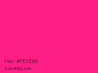 Hex #fe1e86 Color is a normal rose color and the nearest color is Fluorescent Pink #ff1493. Hex code #fe1e86 and RGB value is rgb(254,30,134). In RGB color space, this color is composed of 100% red, 12% green, 53% blue, In CMYK color space, this color is composed of 0% cyan, 88% magenta, 47% yellow , 0% black , In HSL color space, this color has a hue angle of 332° , 99% saturation and 56% lightness.