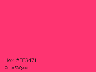 Hex #fe3471 Color is a normal rose color and the nearest color is Neon Fuchsia #fe4164. Hex code #fe3471 and RGB value is rgb(254,52,113). In RGB color space, this color is composed of 100% red, 20% green, 44% blue, In CMYK color space, this color is composed of 0% cyan, 80% magenta, 56% yellow , 0% black , In HSL color space, this color has a hue angle of 342° , 99% saturation and 60% lightness.
