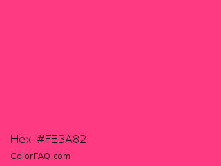 Hex #fe3a82 Color is a light rose color and the nearest color is Sasquatch Socks #ff4681. Hex code #fe3a82 and RGB value is rgb(254,58,130). In RGB color space, this color is composed of 100% red, 23% green, 51% blue, In CMYK color space, this color is composed of 0% cyan, 77% magenta, 49% yellow , 0% black , In HSL color space, this color has a hue angle of 338° , 99% saturation and 61% lightness.