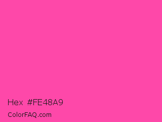 Hex #fe48a9 Color is a light rose color and the nearest color is Wild Strawberry #ff43a4. Hex code #fe48a9 and RGB value is rgb(254,72,169). In RGB color space, this color is composed of 100% red, 28% green, 66% blue, In CMYK color space, this color is composed of 0% cyan, 72% magenta, 33% yellow , 0% black , In HSL color space, this color has a hue angle of 328° , 99% saturation and 64% lightness.