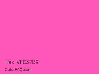 Hex #fe57b9 Color is a light magenta color and the nearest color is Hot Pink #ff69b4. Hex code #fe57b9 and RGB value is rgb(254,87,185). In RGB color space, this color is composed of 100% red, 34% green, 73% blue, In CMYK color space, this color is composed of 0% cyan, 66% magenta, 27% yellow , 0% black , In HSL color space, this color has a hue angle of 325° , 99% saturation and 67% lightness.