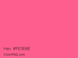 Hex #fe5e8e Color is a light rose color and the nearest color is Strawberry #fc5a8d. Hex code #fe5e8e and RGB value is rgb(254,94,142). In RGB color space, this color is composed of 100% red, 37% green, 56% blue, In CMYK color space, this color is composed of 0% cyan, 63% magenta, 44% yellow , 0% black , In HSL color space, this color has a hue angle of 342° , 99% saturation and 68% lightness.