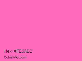 Hex #fe6abb Color is a light magenta color and the nearest color is Hot Pink #ff69b4. Hex code #fe6abb and RGB value is rgb(254,106,187). In RGB color space, this color is composed of 100% red, 42% green, 73% blue, In CMYK color space, this color is composed of 0% cyan, 58% magenta, 26% yellow , 0% black , In HSL color space, this color has a hue angle of 327° , 99% saturation and 71% lightness.