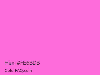 Hex #fe6bdb Color is a light magenta color and the nearest color is Rose Pink #ff66cc. Hex code #fe6bdb and RGB value is rgb(254,107,219). In RGB color space, this color is composed of 100% red, 42% green, 86% blue, In CMYK color space, this color is composed of 0% cyan, 58% magenta, 14% yellow , 0% black , In HSL color space, this color has a hue angle of 314° , 99% saturation and 71% lightness.