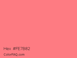 Hex #fe7b82 Color is a light red color and the nearest color is Froly #f57584. Hex code #fe7b82 and RGB value is rgb(254,123,130). In RGB color space, this color is composed of 100% red, 48% green, 51% blue, In CMYK color space, this color is composed of 0% cyan, 52% magenta, 49% yellow , 0% black , In HSL color space, this color has a hue angle of 357° , 98% saturation and 74% lightness.