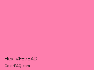 Hex #fe7ead Color is a light rose color and the nearest color is Tickle Me Pink Crayola #fc80a5. Hex code #fe7ead and RGB value is rgb(254,126,173). In RGB color space, this color is composed of 100% red, 49% green, 68% blue, In CMYK color space, this color is composed of 0% cyan, 50% magenta, 32% yellow , 0% black , In HSL color space, this color has a hue angle of 338° , 98% saturation and 75% lightness.