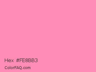 Hex #fe8bb3 Color is a light rose color and the nearest color is Schauss Pink #ff91af. Hex code #fe8bb3 and RGB value is rgb(254,139,179). In RGB color space, this color is composed of 100% red, 55% green, 70% blue, In CMYK color space, this color is composed of 0% cyan, 45% magenta, 30% yellow , 0% black , In HSL color space, this color has a hue angle of 339° , 98% saturation and 77% lightness.