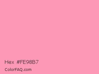 Hex #fe98b7 Color is a light rose color and the nearest color is Schauss Pink #ff91af. Hex code #fe98b7 and RGB value is rgb(254,152,183). In RGB color space, this color is composed of 100% red, 60% green, 72% blue, In CMYK color space, this color is composed of 0% cyan, 40% magenta, 28% yellow , 0% black , In HSL color space, this color has a hue angle of 342° , 98% saturation and 80% lightness.