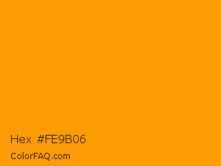 Hex #fe9b06 Color is a normal orange color and the nearest color is California #fe9d04. Hex code #fe9b06 and RGB value is rgb(254,155,6). In RGB color space, this color is composed of 100% red, 61% green, 2% blue, In CMYK color space, this color is composed of 0% cyan, 39% magenta, 98% yellow , 0% black , In HSL color space, this color has a hue angle of 36° , 99% saturation and 51% lightness.